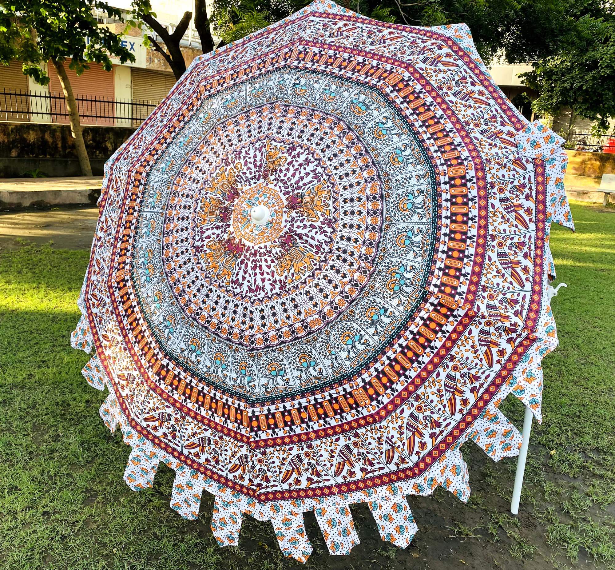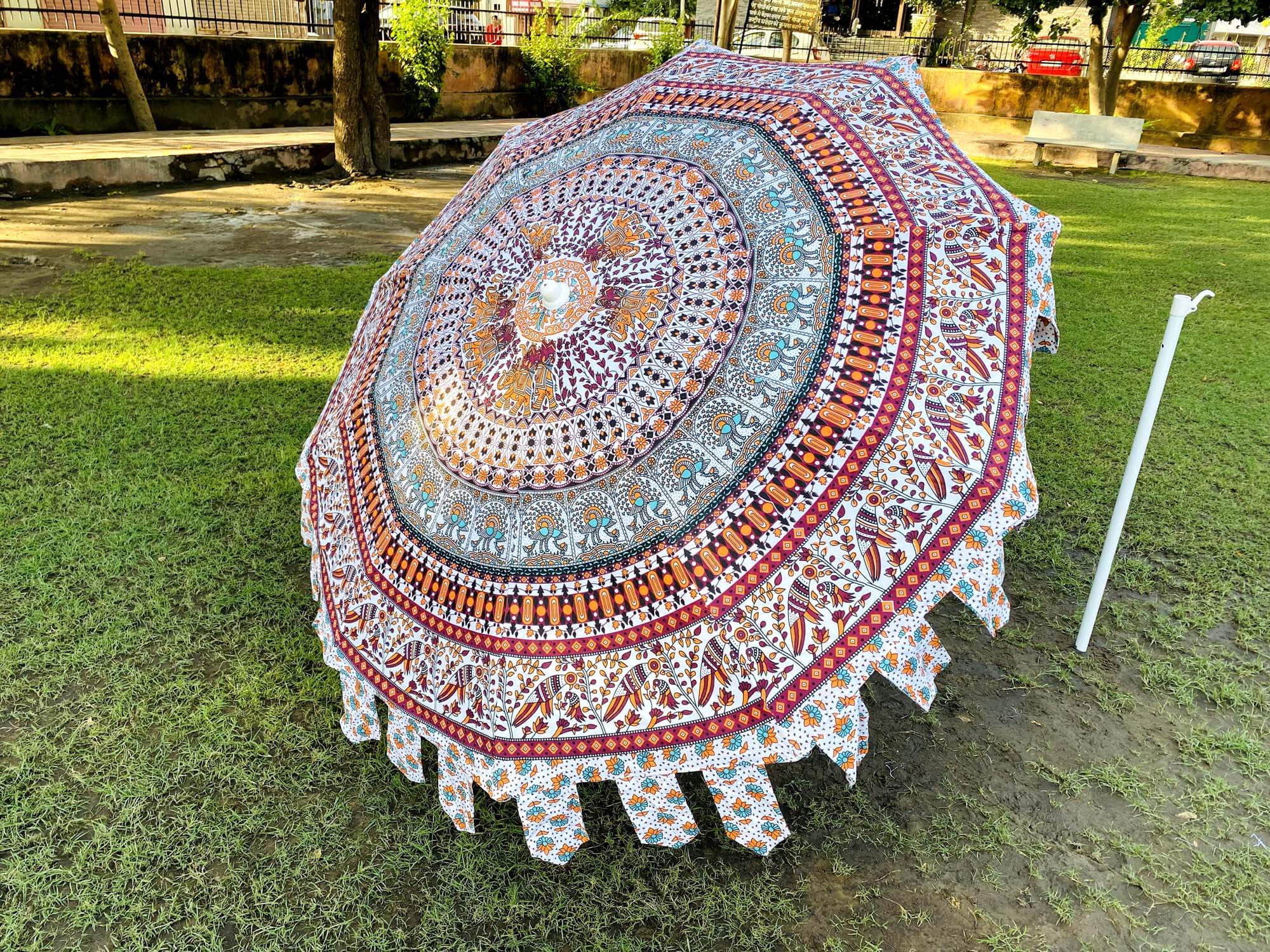 Beautiful Indian Mandala Print White Multicolor Cotton Umbrella