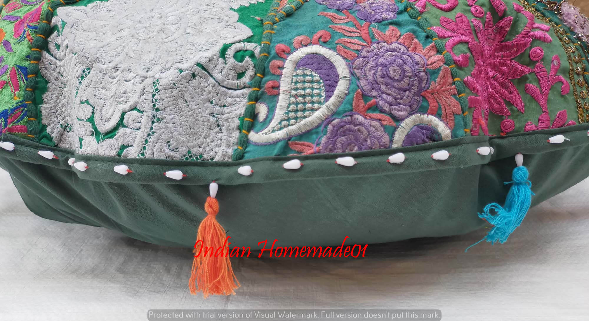 Cotton Handmade Floral Embroidery Printed Round One Zipper Pillow Cover