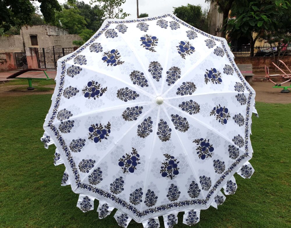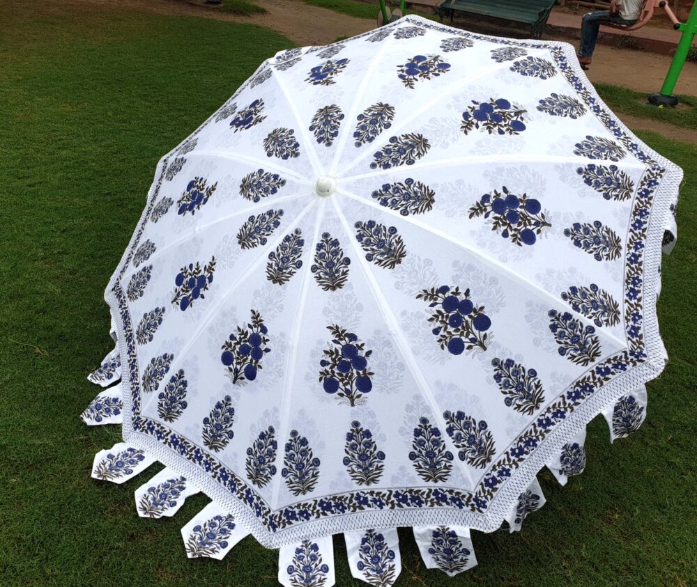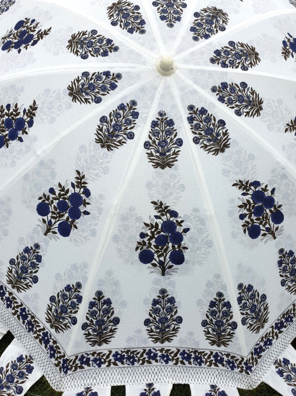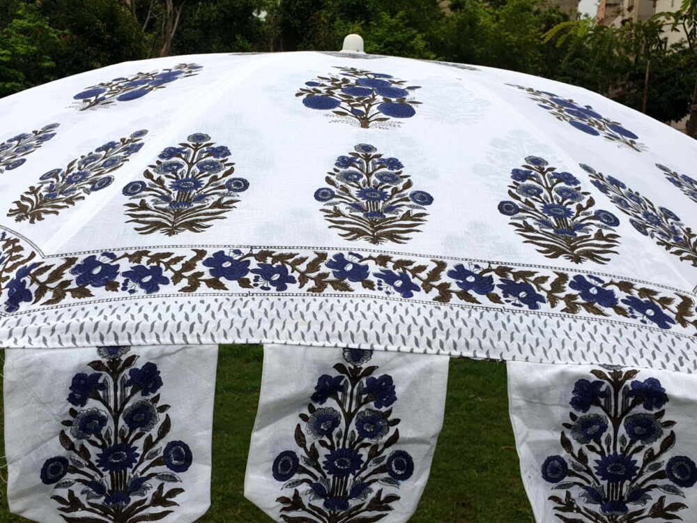 Floral Hand Block Print Garden Umbrella, Sunshade Parasols