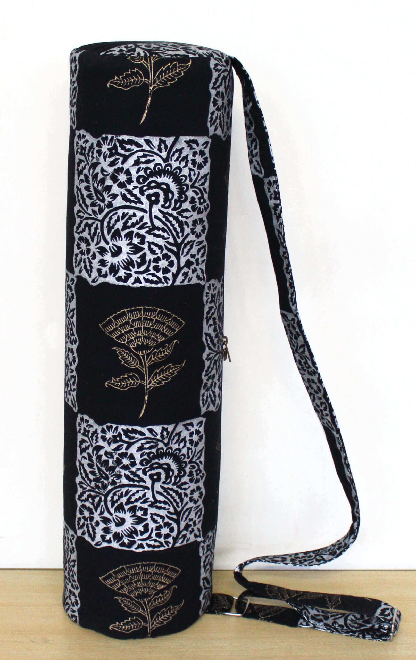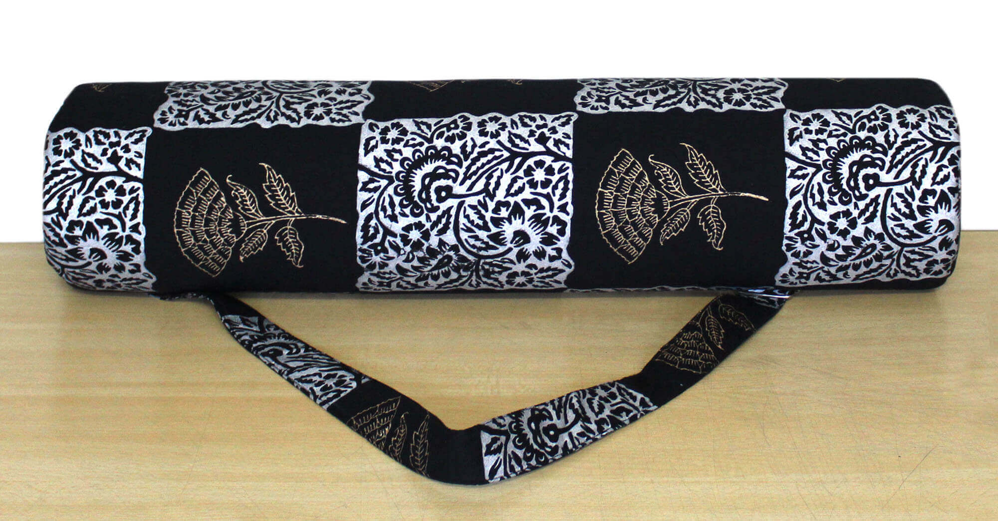 Handmade Black Golden Floral Printed Yoga Mat Carrier Bag Unisex Gym Bag