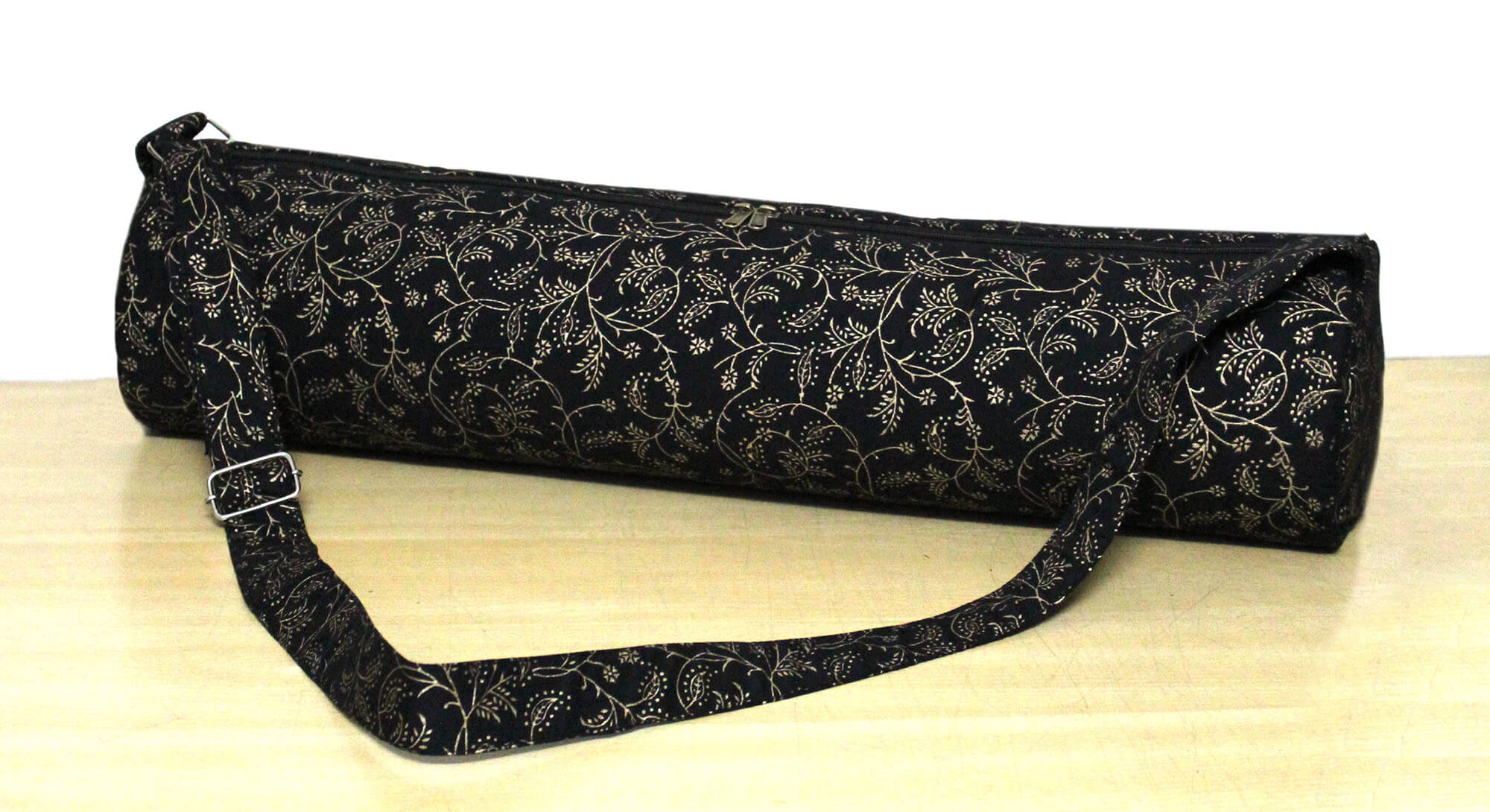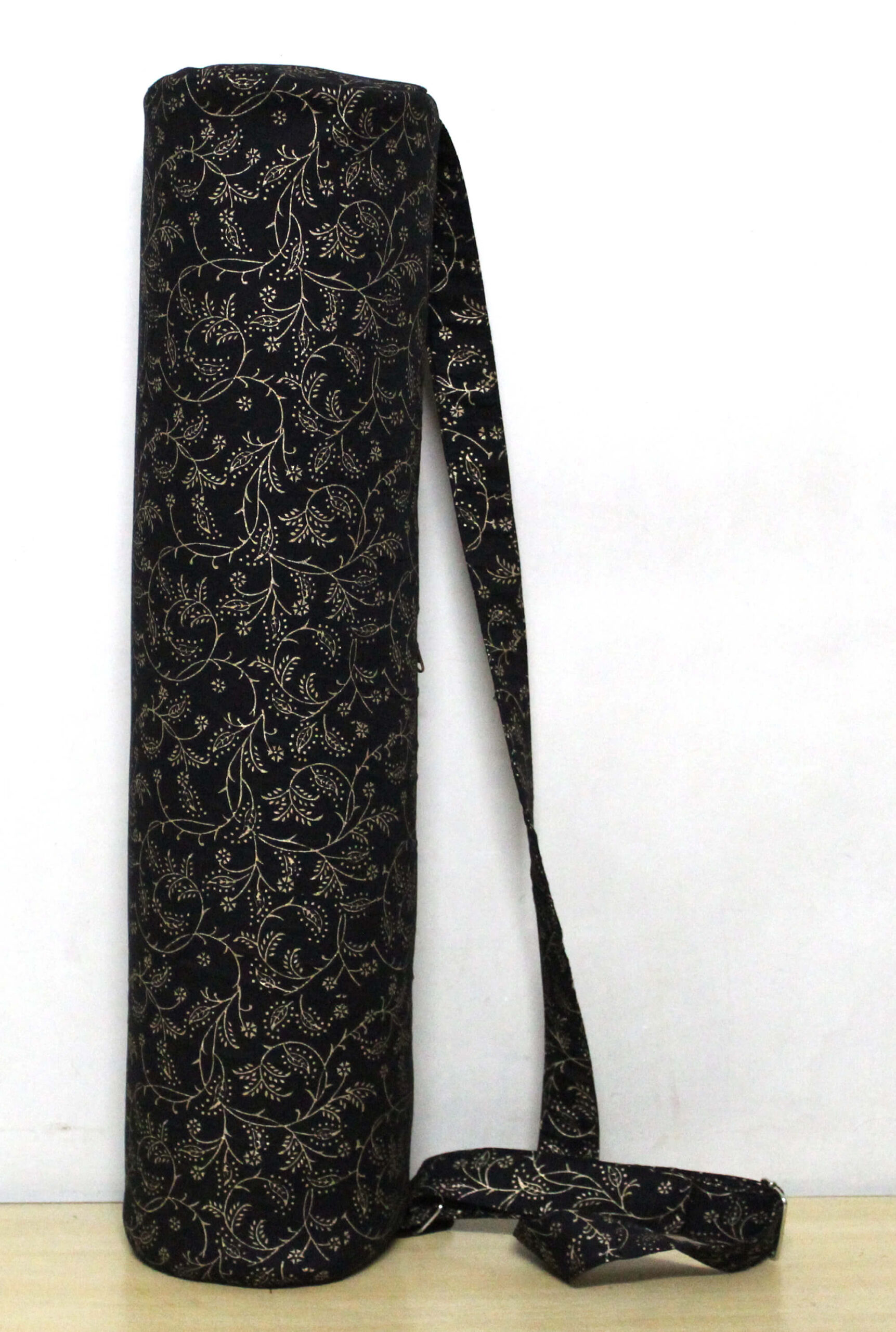 Indian Floral Print Black Yoga Mat Bag Gym And Pilates Bag Mat Carrier Bag