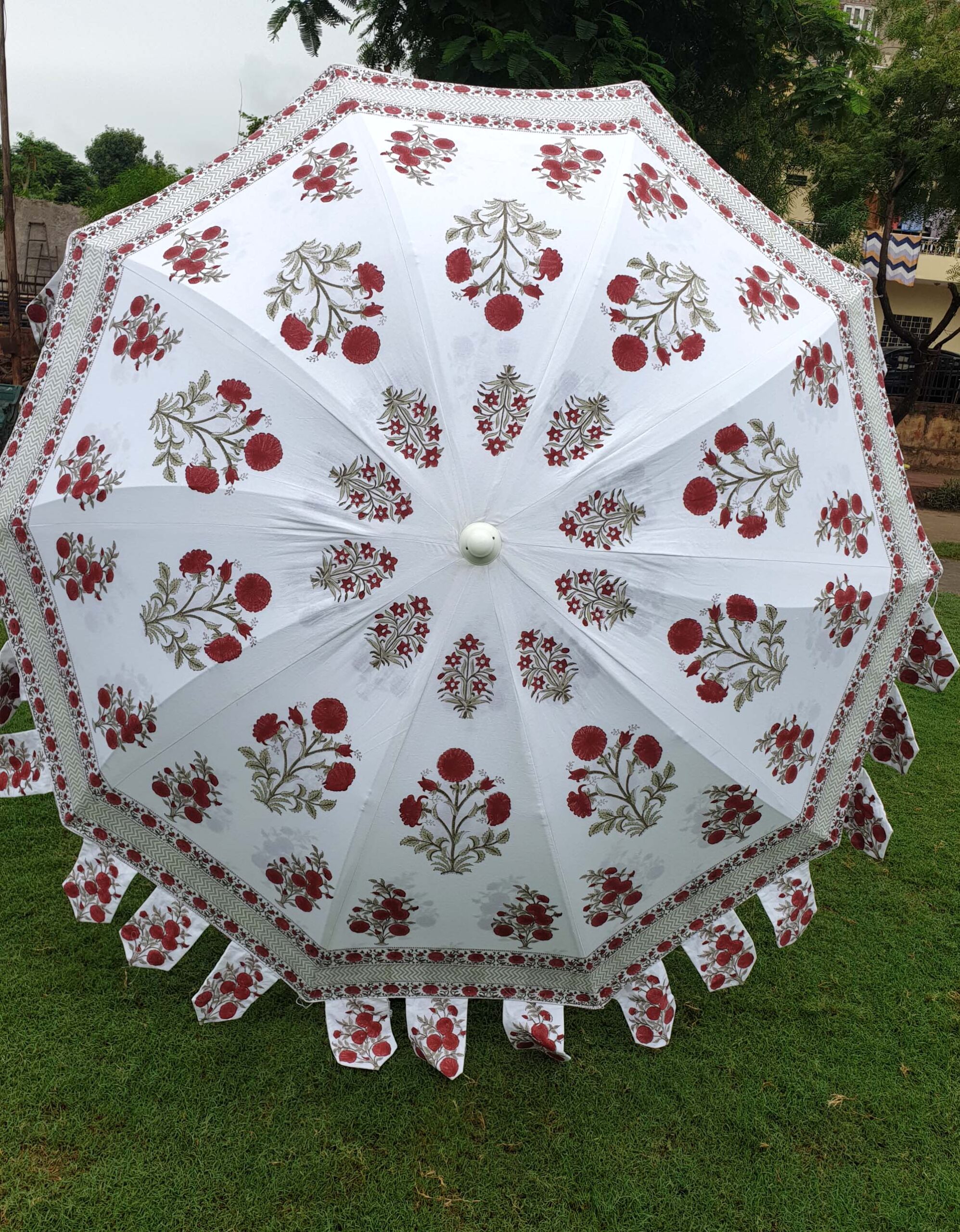 Indian Hand Block Cotton Fabric Outdoor Garden Umbrella